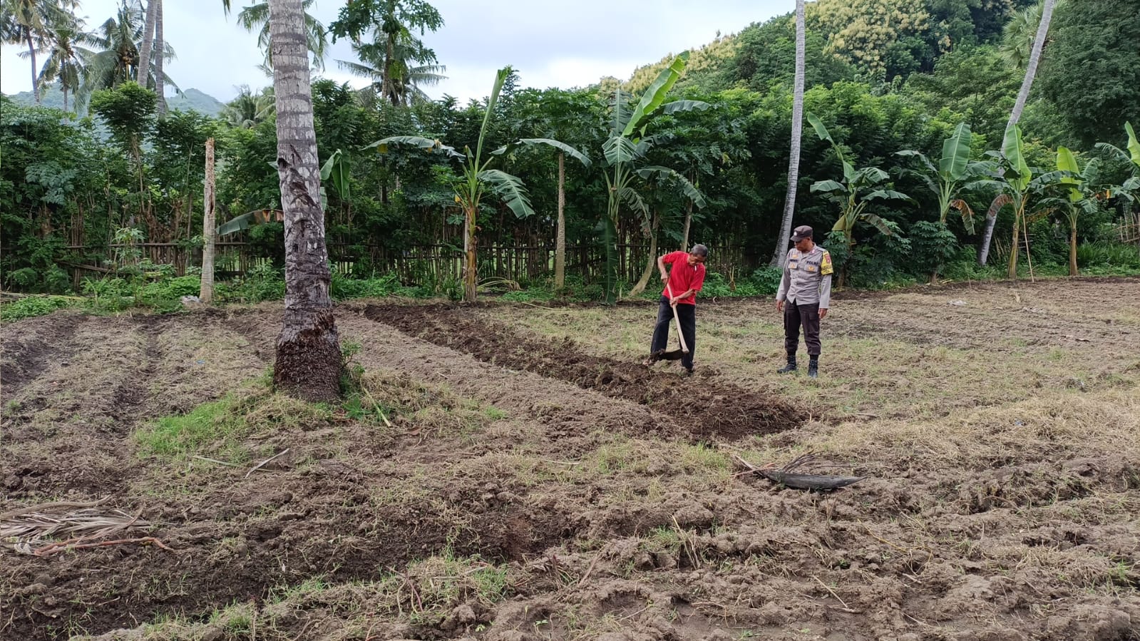 Sumbawa Besar –NTB, Bhabinkamtibmas Polsek Buer, BRIPKA Heriyanto, melaksanakan kegiatan sambang sekaligus memantau aktivitas para pekebun di Desa Tarusa, tepatnya di kebun milik Bapak A. Rahman yang berada di wilayah Orong Lalak, Sabtu (15/02/25) pagi.