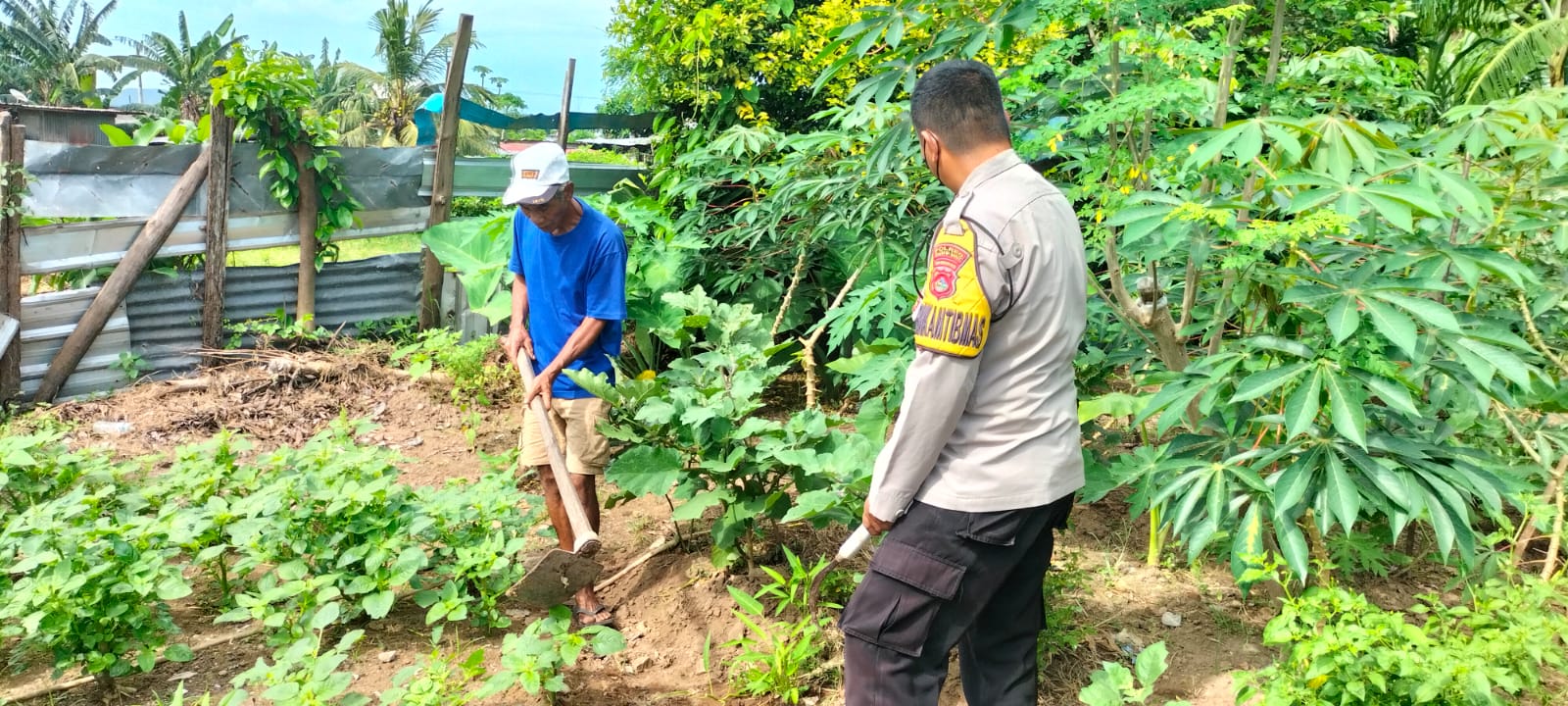 Bripka Ramli mengecek dan memonitor pekarangan bergizi milik warga yang ditanami berbagai jenis tanaman, antara lain cabai, terong, singkong, dan okra. Program Asta Cita Swasembada Pangan bertujuan untuk mendorong ketahanan pangan melalui pemanfaatan pekarangan rumah tangga untuk ditanami tanaman yang bernilai gizi tinggi.
