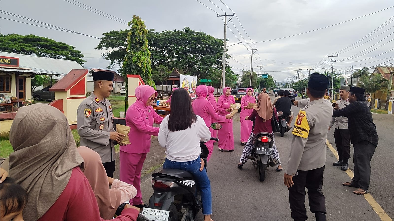 Pada kali ini, Momen penuh kehangatan ditunjukkan oleh kedua Polsek tersebut dalam membagikan paket takjil yang beri si makanan ringan dan minuman kepada masyarakat yang melintas di jalan raya depan Mapolsek masing-masing.