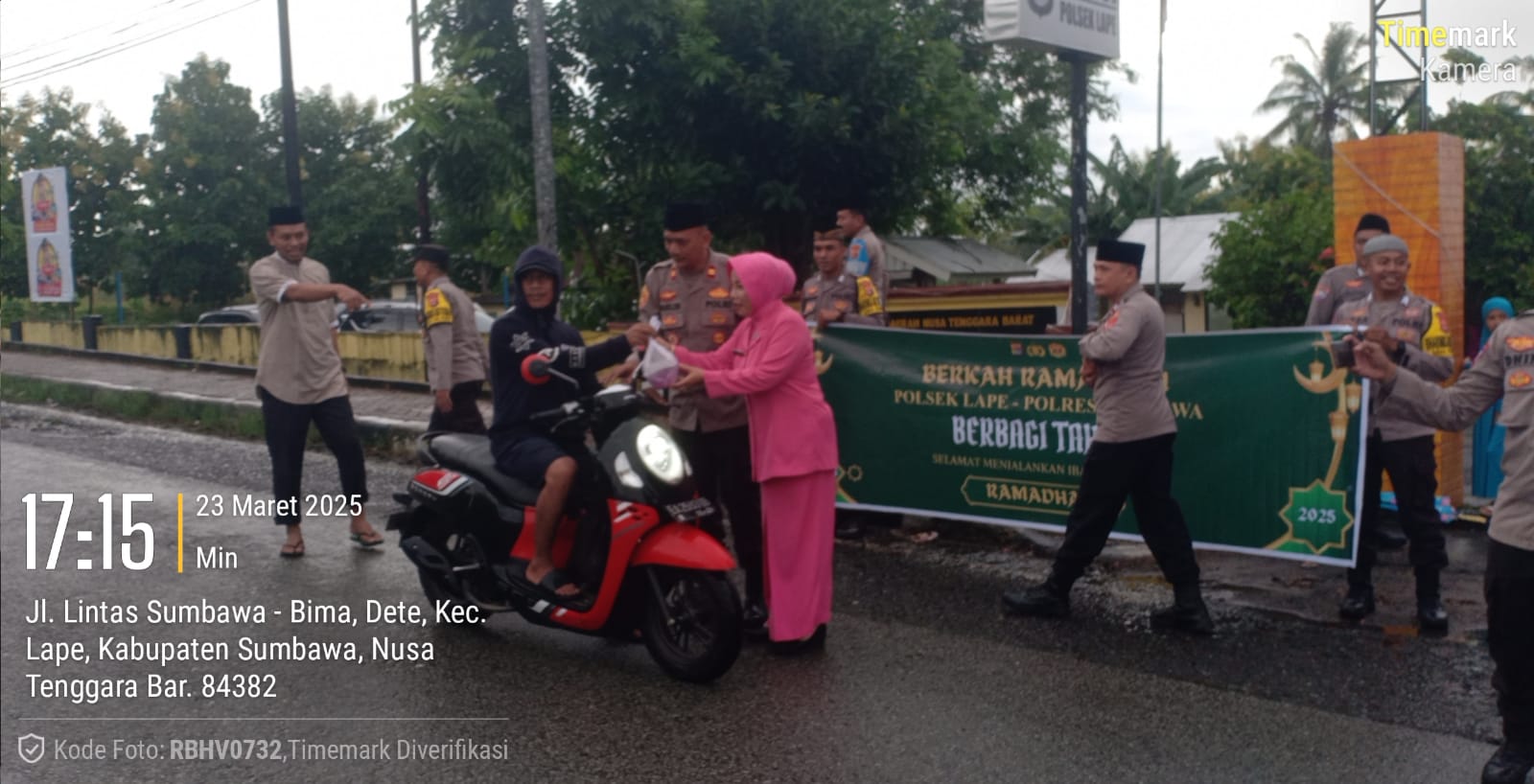 Sumbawa Besar-NTB, Kegiatan berbagi takjil menyambut buka puasa kembali digelar jajaran Polres Sumbawa, kali ini personel Polsek Lape dan Polsek Plampang, Minggu (23/03/25).