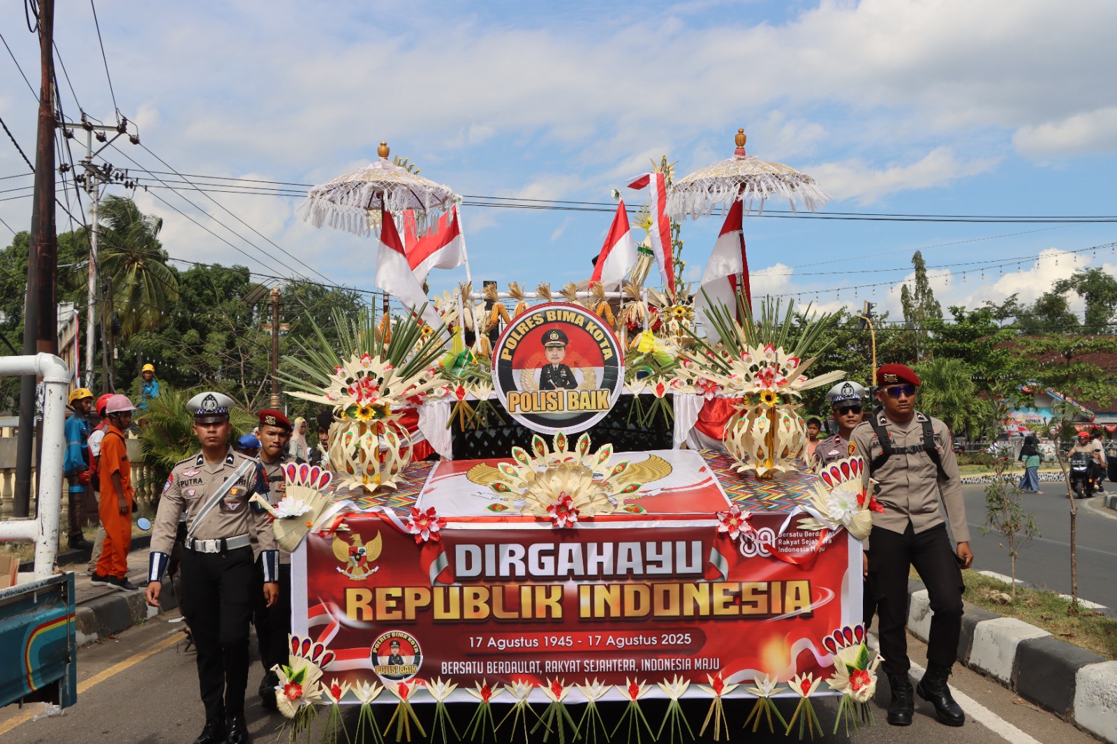 Kota Bima, NTB (26 Agustus 2025) – Polres Bima Kota turut memeriahkan Karnaval Kendaraan Hias yang digelar Pemerintah Kota Bima dalam rangka memperingati Hari Ulang Tahun (HUT) ke-80 Kemerdekaan Republik Indonesia, Senin siang (25/8/2025).