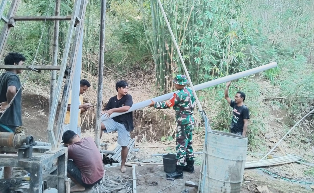 Babinsa Dampingi Pembangunan Sumur Bor, 68 KK di Labuan Tereng Kini Nikmati Air Bersih