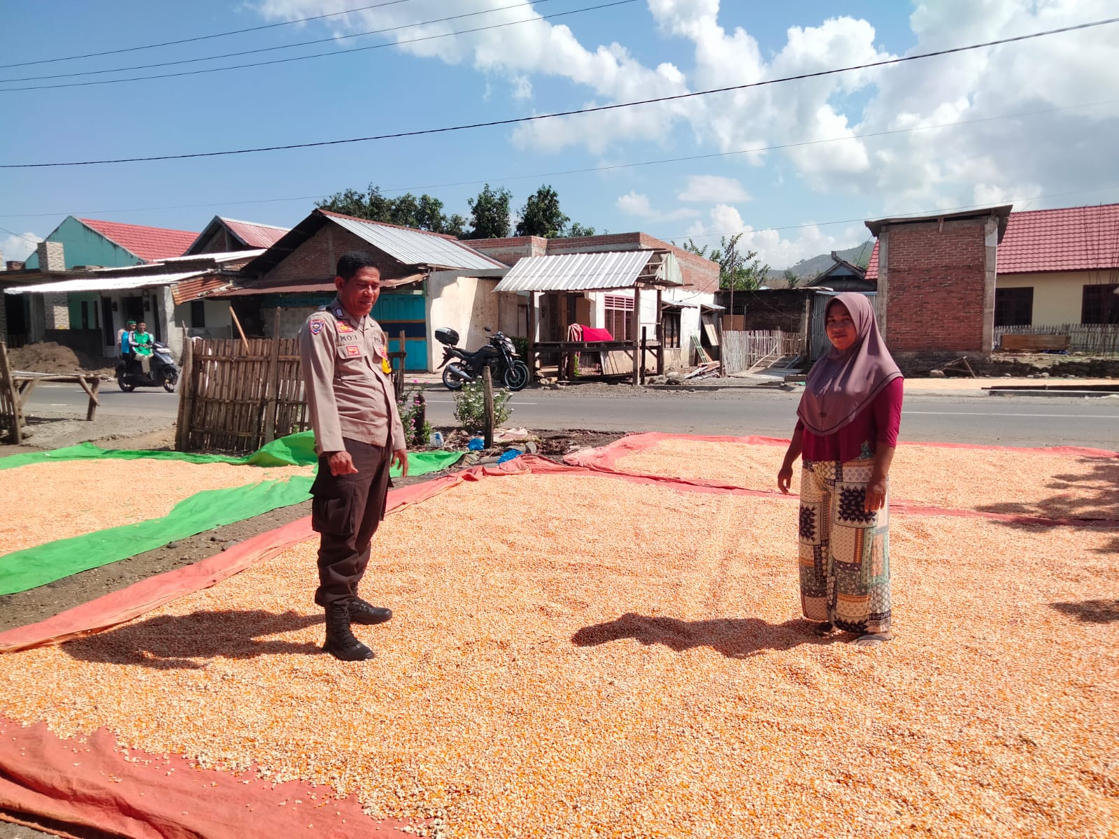 Dalam kegiatan tersebut, Bripka Ismail meninjau aktivitas salah satu warga, Sdr. Manysir, yang sedang menjemur jagung hasil panen. Ia juga menyampaikan pesan kepada para petani agar tetap bersemangat dalam bekerja serta terus memotivasi masyarakat lainnya untuk tekun mencari nafkah demi meningkatkan taraf hidup.