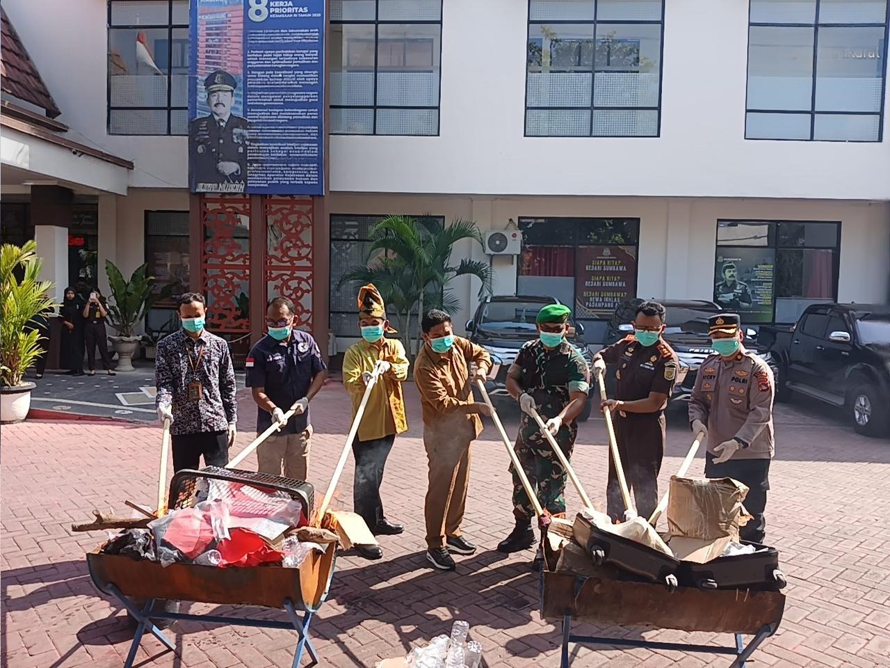 Wujudkan Kepastian Hukum, Wakapolres Sumbawa Hadiri Pemusnahan Barang Bukti Inkracht di Kejari